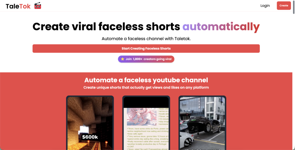 Create viral faceless shorts with Taletok AI. Automate YouTube, TikTok & Instagram channels with AI-generated Reddit stories and videos. Try free today!