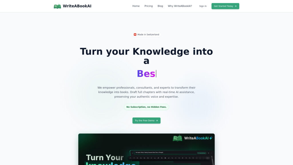 Transform your expertise into published books with WriteABookAI. AI-powered writing assistant that generates outlines, chapters, and professional manuscripts in weeks. Try free today!