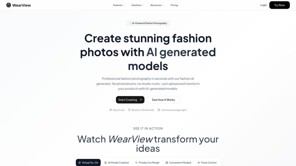Transform fashion content with WearView AI. Generate professional model photography in seconds without expensive photoshoots. Try the cutting-edge AI tool free today!