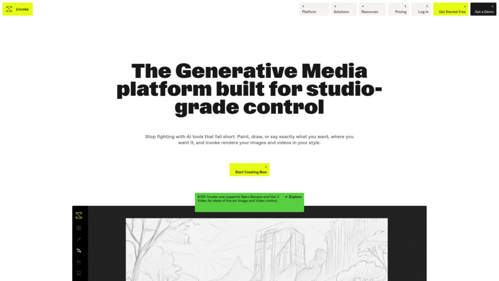 Create studio-grade content with Invoke AI. Generate images and videos, train custom models, and collaborate securely. Transform your creative workflow with advanced AI technology.