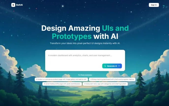 Transform website ideas into web pages instantly with Bolt AI. Professional AI-powered web designer creates stunning sites in seconds. Try the free AI web app builder now!