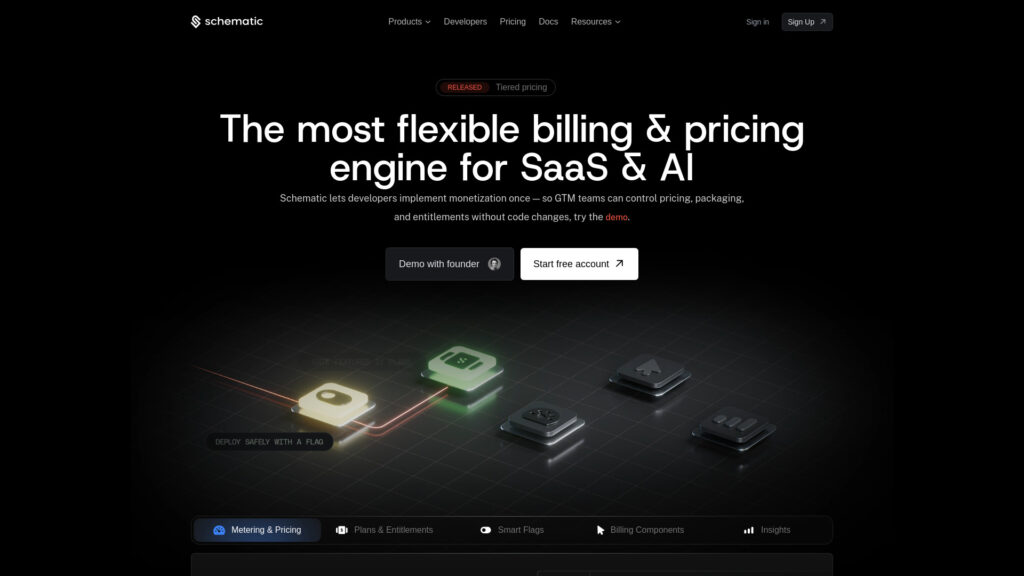 Schematic is a flexible billing and pricing engine for SaaS companies. Launch usage-based pricing, manage entitlements, and control monetization without code changes. Stripe integration included.