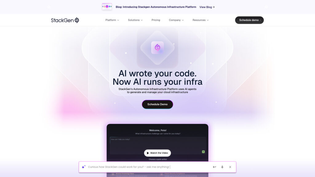 StackGen autonomously builds, governs, and optimizes cloud infrastructure using 7 AI agents. Generate IaC from natural language prompts. Try the intelligent DevOps platform today!