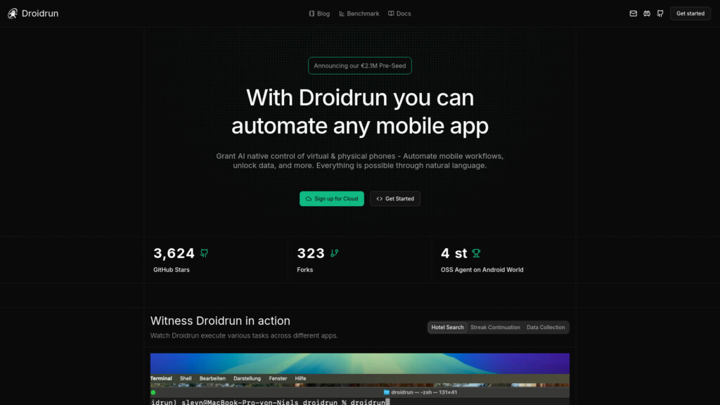 Droidrun - Open-Source AI Mobile Automation Tool Introduction. Droidrun transforms Android devices into AI playgrounds. Automate mobile workflows, unlock app data, and control phones with AI agents. 100% open-source SDK available.