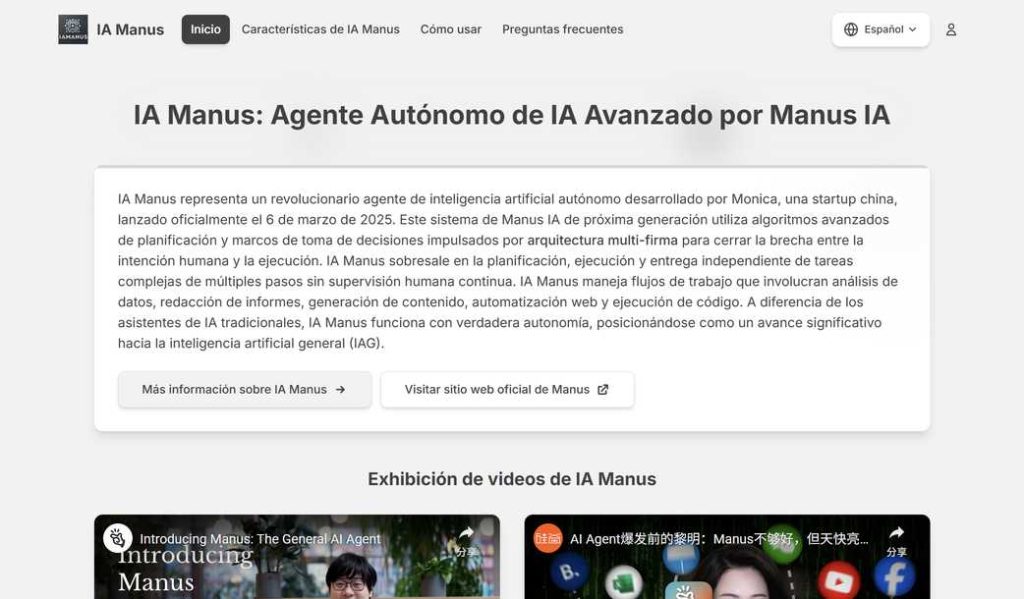 IA Manus Introduction. IA Manus transforma intenciones en acciones con tecnología Manus IA. Nuestro agente autónomo utiliza algoritmos avanzados de planificación para ejecutar tareas complejas de forma independiente sin supervisión continua.