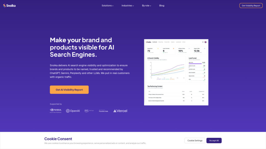 Snoika - AI SEO & Brand Visibility Tool for LLMs Introduction. Snoika is an AI-powered SEO platform that helps brands rank on Google and AI search engines like ChatGPT, Perplexity, and Gemini. Get AI visibility with automated content creation and analytics.
